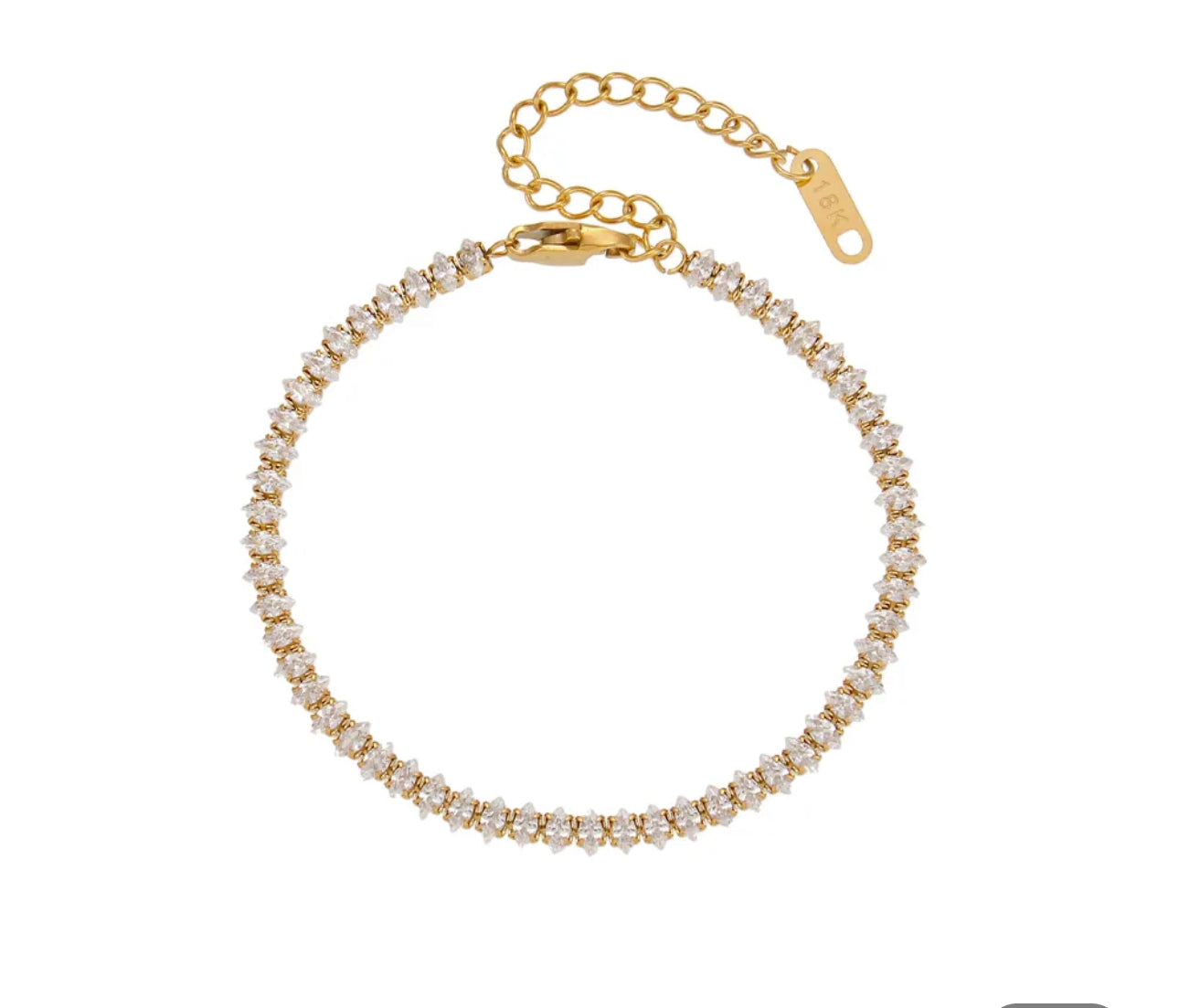 Achieve effortless elegance with the Bebesita tennis bracelet. Crafted with 316L Stainless Steel; this delicate yet bold accessory exudes sophistication with its vibrant and glimmering stones. A timeless piece that adds a touch of glamour to any ensemble, the Bebesita bracelet is sure to become a signature staple.