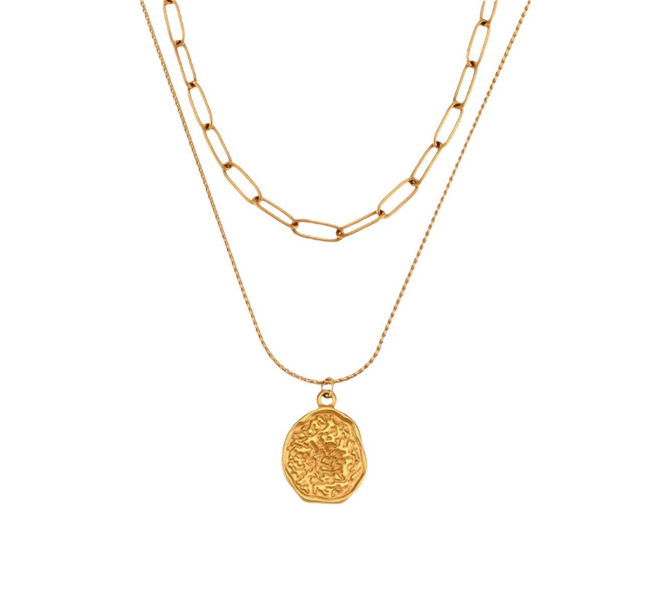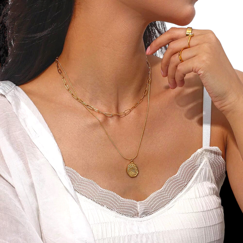 For fans of layered looks and easy stacking on-the-go, this necklace combines two pieces into one for added volume and convenience. Achieve a stylish, layered look with one simple piece.
