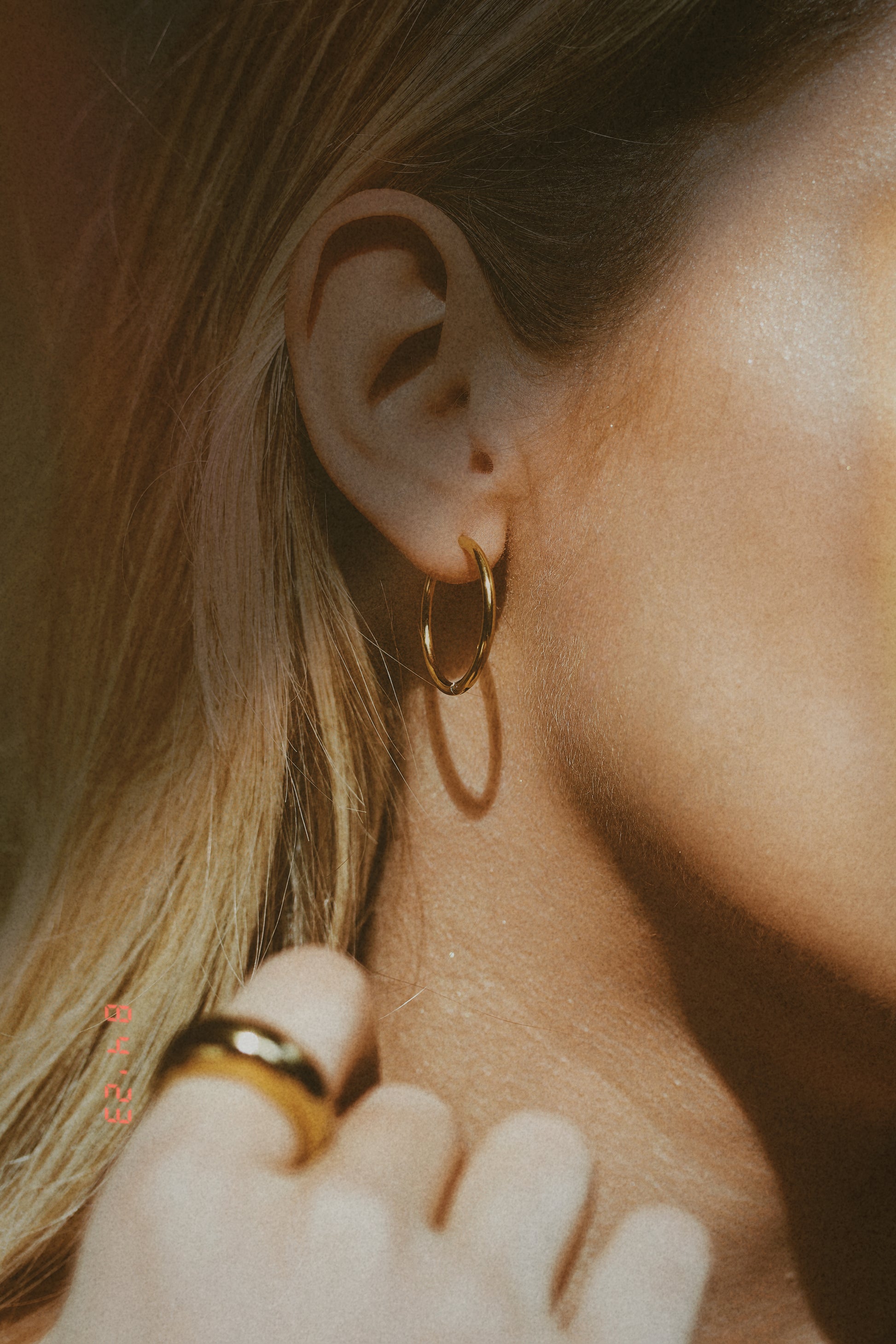 May Hoop is a perfect choice for those looking for a delicate but larger hoop for their everyday look. The hoop is much thinner and lighter than classic hoops, allowing you to make a subtle statement without drawing too much attention.